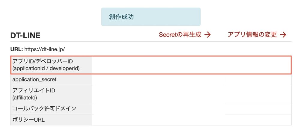 アプリID/デベロッパーIDが表示されたら、それをコピーします。